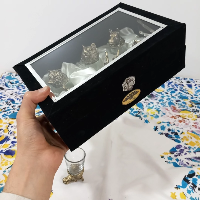 شات قهوه کار دکوری و پذیرایی ست شش تایی با جعبه باهم با حیوان متفاوت ارسال میشه تلفیقی از شیشه و آلیاژ کار پر طرفدار