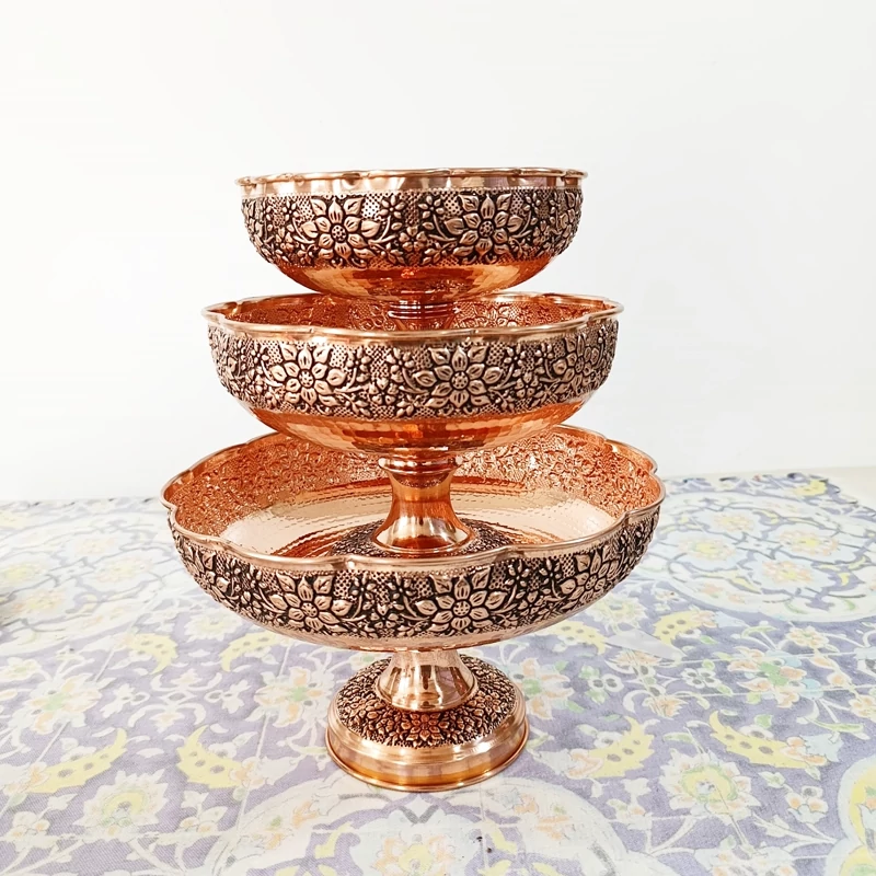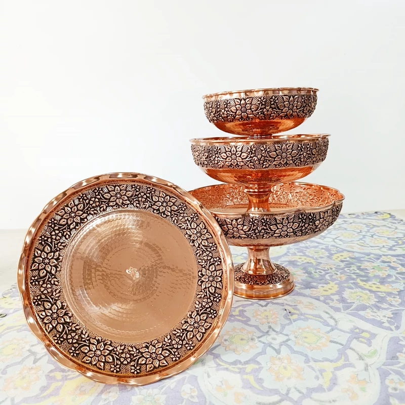 سرویس پذیرایی 4 تیکه این محصول هم موجود است شامل شیرینی خوری و شکلات خوری و میوه خوری میتوانید از غرفه خرید کنید
