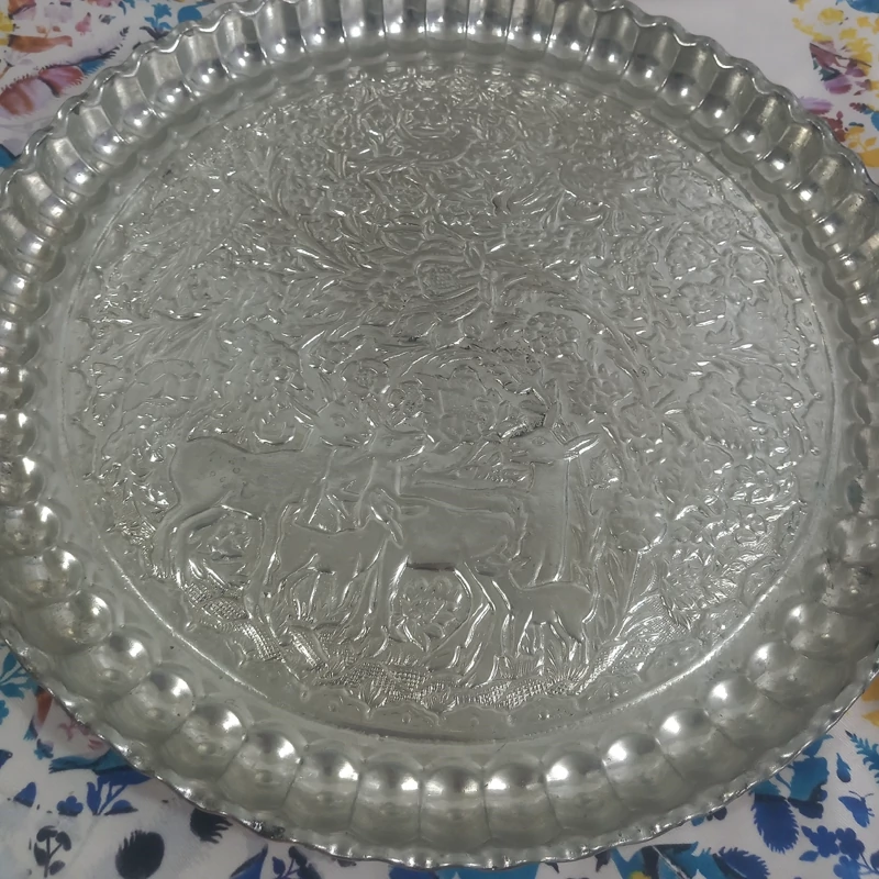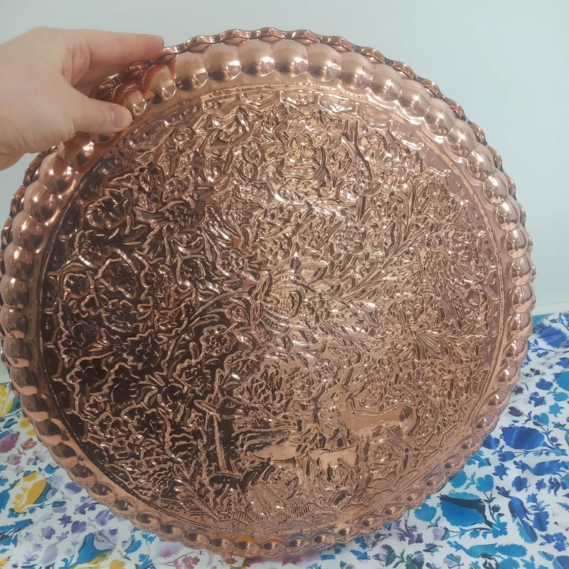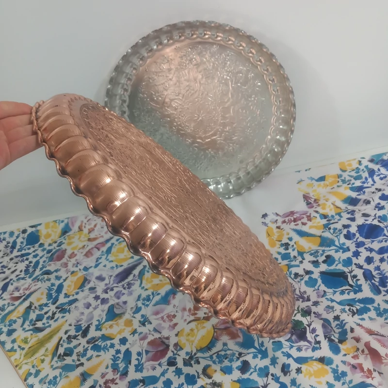 مجمع تمام مسی قطر45 داخل قلع طرح برجسته بسیار زیبا نانو شده رنگ ثابت ارسال رایگان پشت کار مسی نانو شده داخل قلع کاری شده بسیار کار زیبا با طرح های زیبا کار ضخیم درجه یک