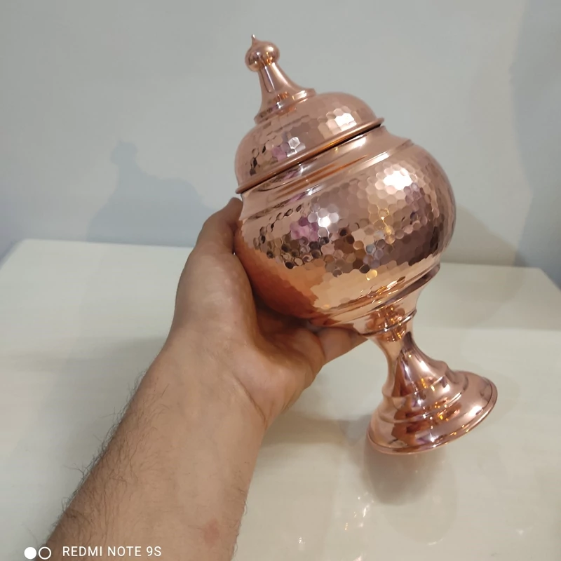 شکلات خوری گنبدی چکشی فضلی داخل قلع با چکش تمیز با بهترین و براق ترین ورق مس تولید شده است