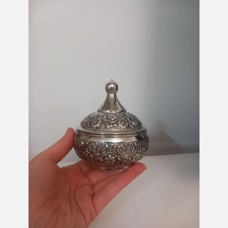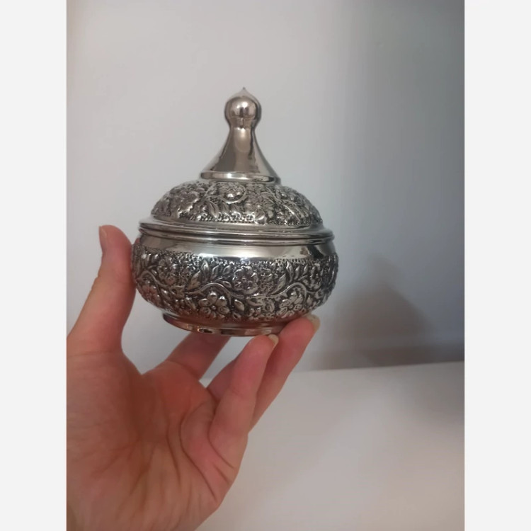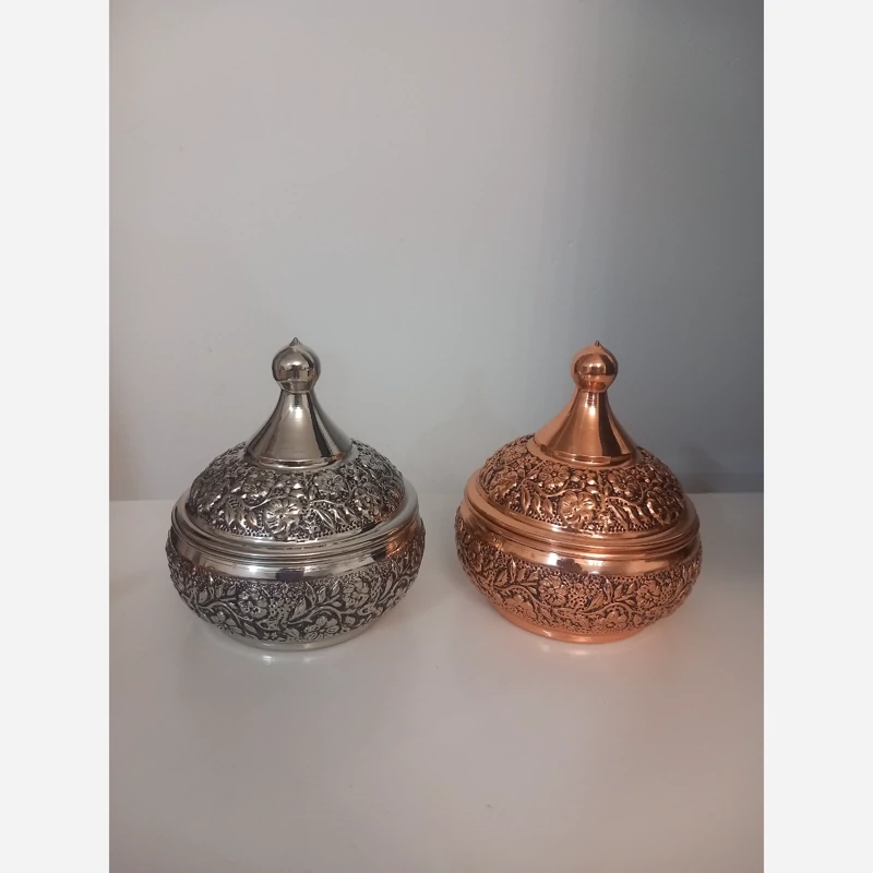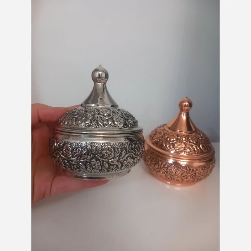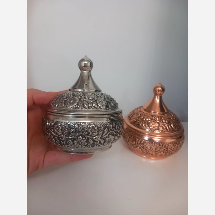 قندان مسی کروم گلبرگ سیاه قلم ارسال رایگان کار زیبا درجه یک با بهترین کیفیت تولید زنجان