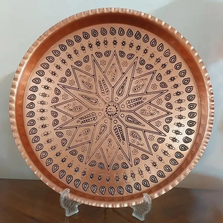 سینی مسی ترمه سیاه قلم سایز 7 قطر 30 سانت