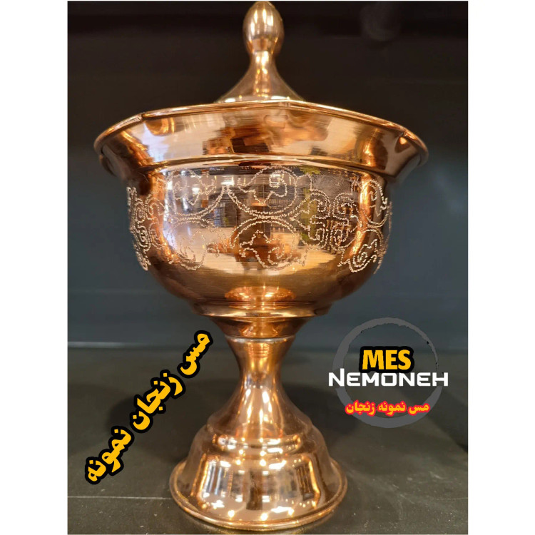 شکلات خوری مسی لیزری پایه دار ارتفاع 24 قطر 17 سانت