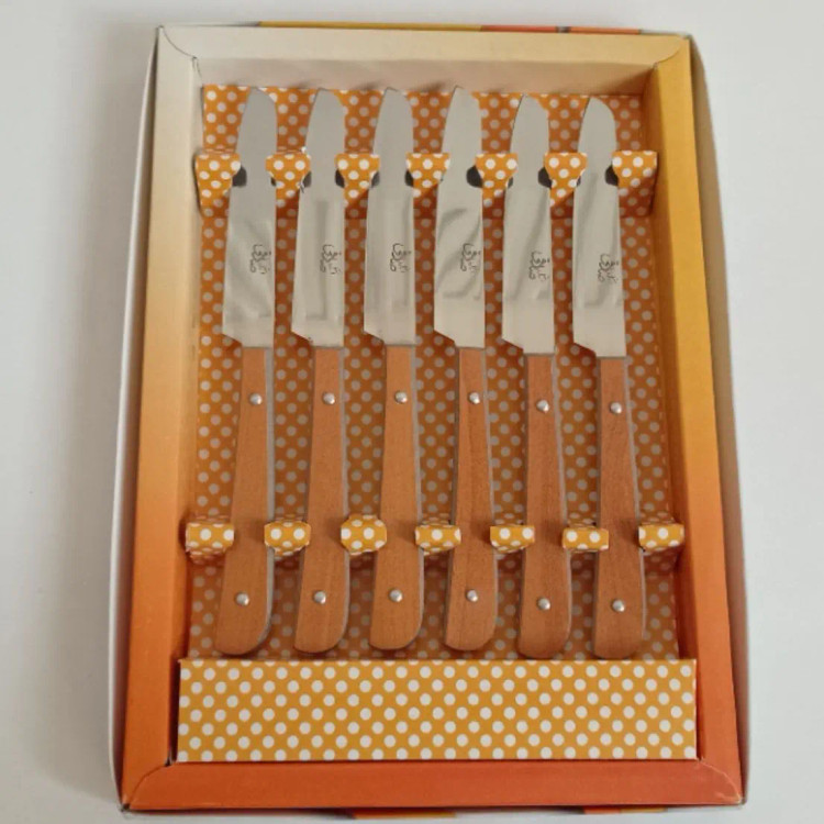 چاقو زنجان صادقی 6 عددی بدون باربند در رنگ قهوه ای