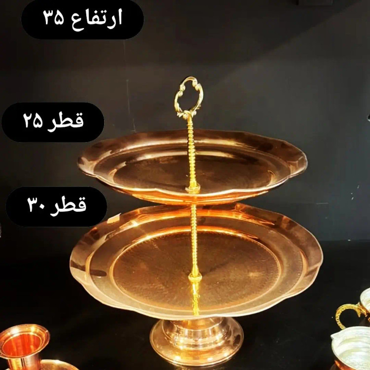 شیرینی خوری مسی سایز بزرگ دو طبقه ،ارتفاع 35 قطر طبقه اول 30 قطر طبقه دوم 25