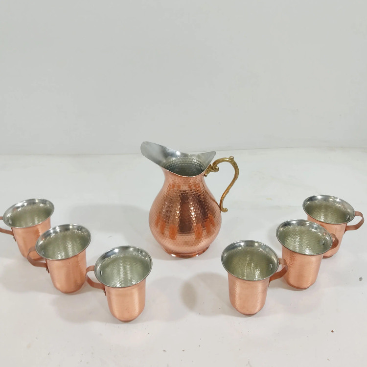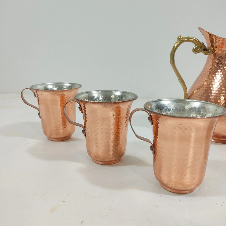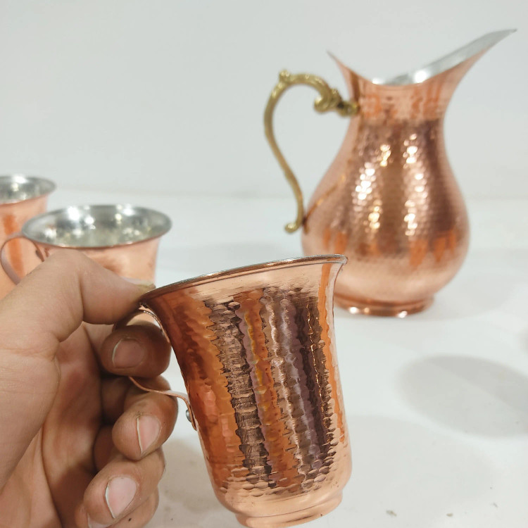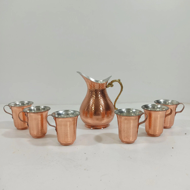 پارچ مسی اردکی به همراه 6 لیوان لاله