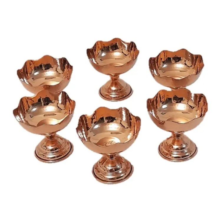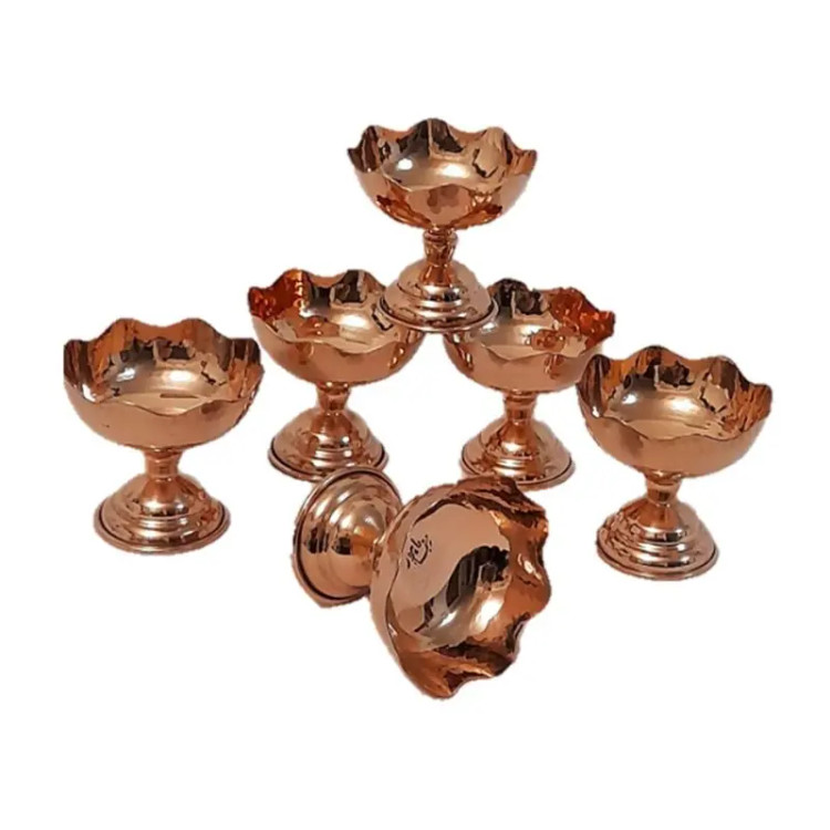 بستنی خوری و هفت سین مسی نقلی خورشیدی 6 عددی در مس نمونه زنجان.نانو شده