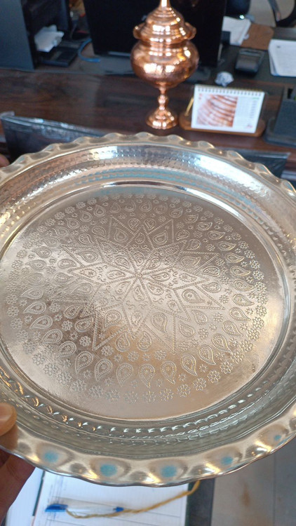 سینی مسی گرد پایه دار سایز 2 قطر 27 سانت گوشواره دار طرحدار
