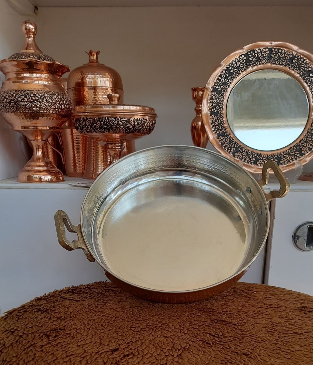 ظاهر سنتی و زیبا: نقش و نگارهای چکشی جلوهای اصیل و دستساز به ظرف میدهد، به همین دلیل علاوه بر کاربرد، جنبهی تزیینی هم دارد.