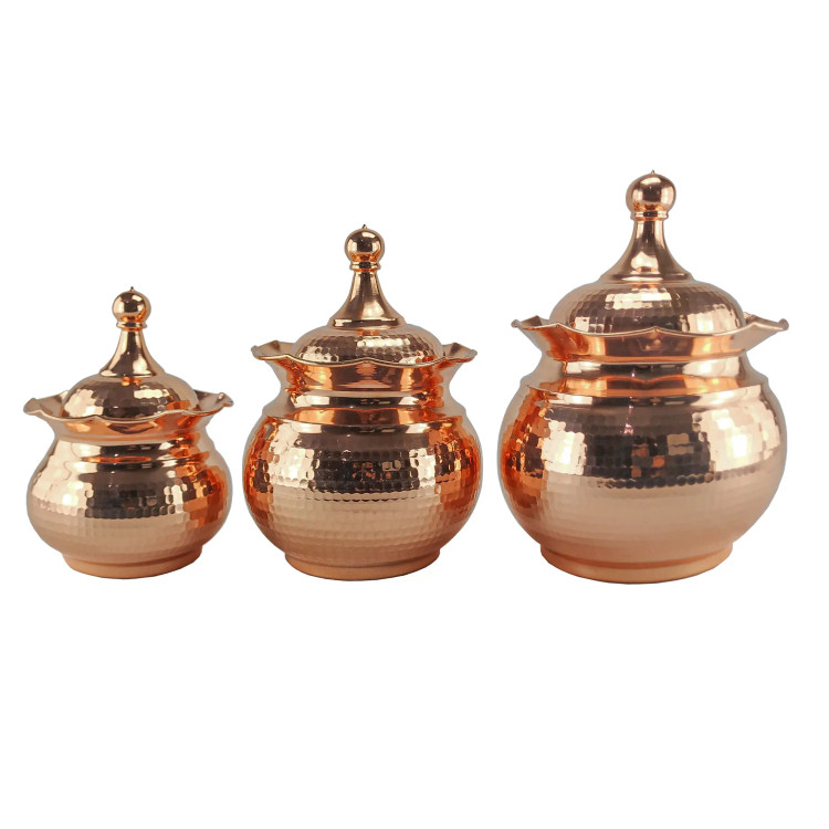شکلات خوری مسی 3عددی بدون پایه در 3 سایز 27x25x20 در مس نمونه زنجان چکشی نانو مناسب.قندان.شکلات و آجیل