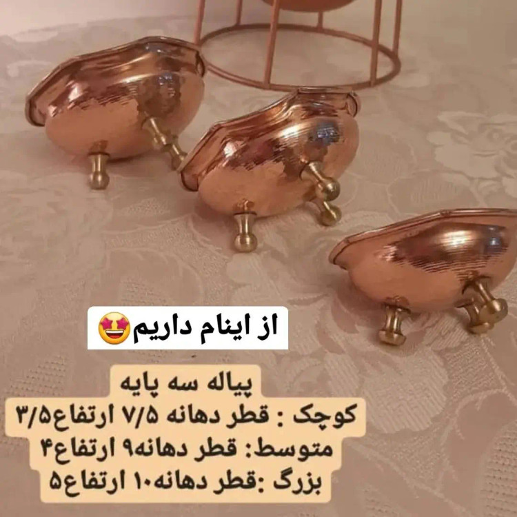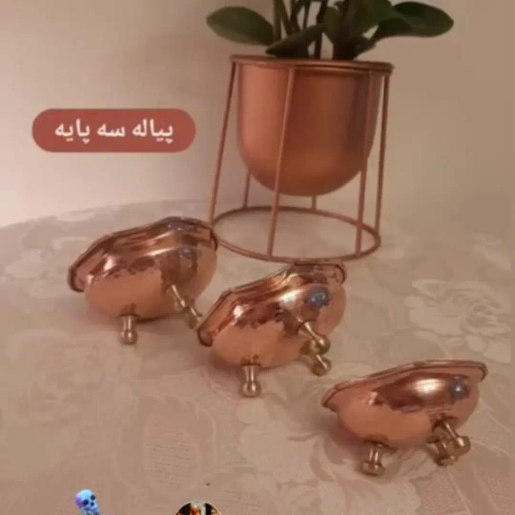 پیاله مسی سه پایه برنجی سایز 2 (یک عددی) ارتفاع 4 سانت دهانه 9سانت