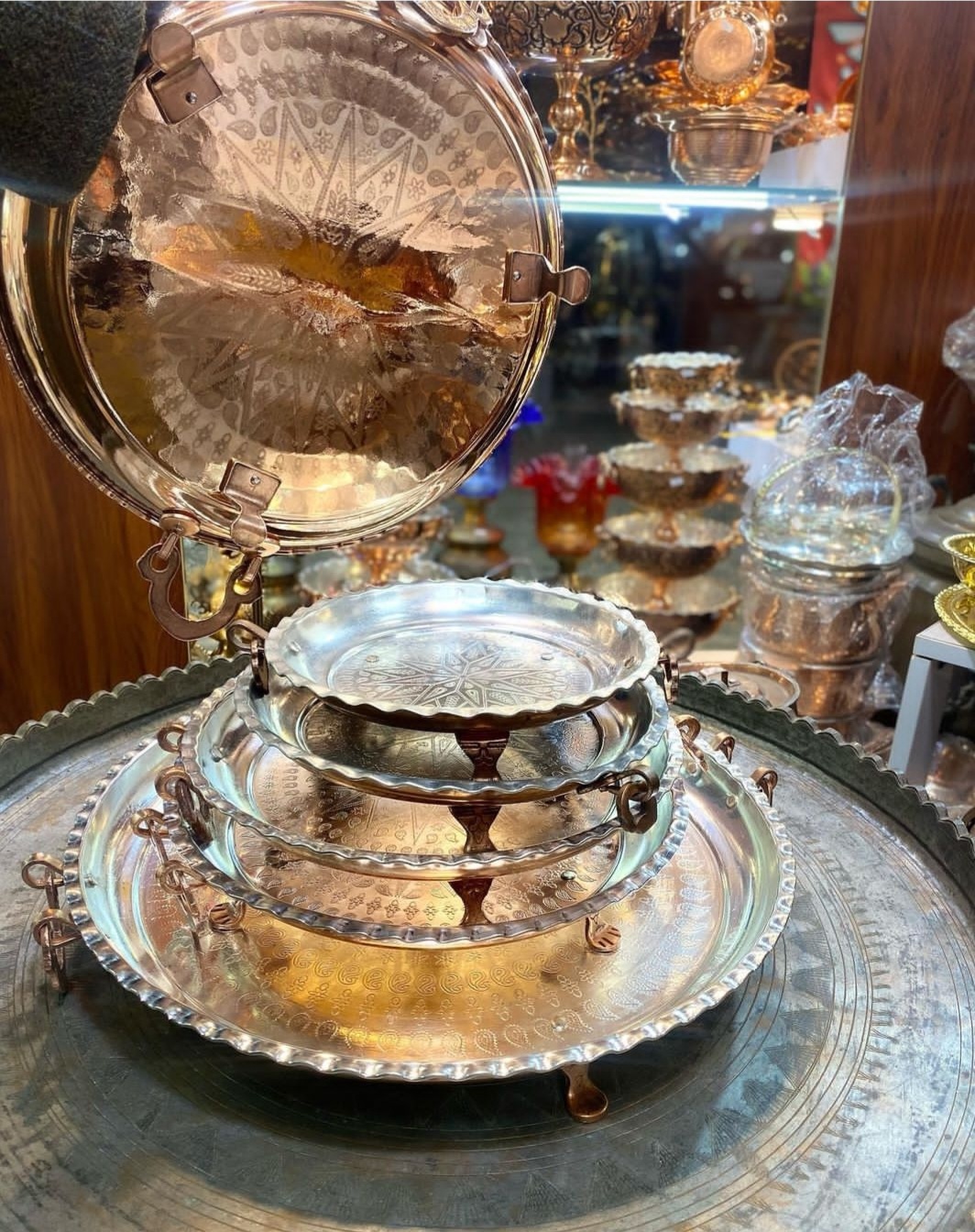 سینی مسی سه پایه یک محصول زیبا و کاربردی از صنایعدستی ایرانی است که با ظرافت و دقت ساخته شده است. این سینی از مس خالص تهیه شده و دارای سه پایه محکم برای حفظ تعادل و استحکام بیشتر است. مناسب برای خورشت پلو برنج سالاد، شیرینی، میوه یا دکور میز پذیرایی و سفرههای سنتی میباشد.