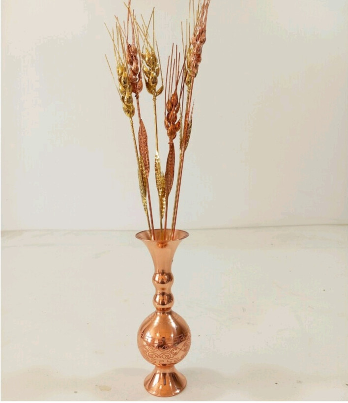 گلدان مسی با ست سنبل مسی ۶ عددی رنگ مسی ،برنجی ،نقره ای