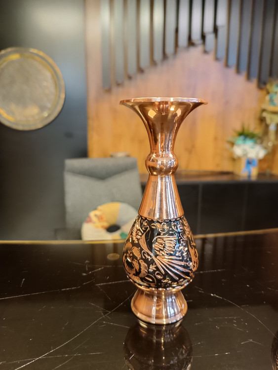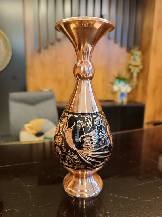 گلدان مسی الماس تراش سیاه قلم سایز 2 ارتفاع20 سانت
