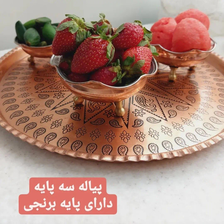 پیاله مسی سه پایه برنجی سایز 3(1 عددی) قطر دهانه 10 سانت ارتفاع 5 سانت چکشی