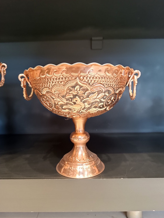 کاسه تک پایه سیاه قلم مسی سایز 1 ارتفاع 16.5 سانت گوشواره دار