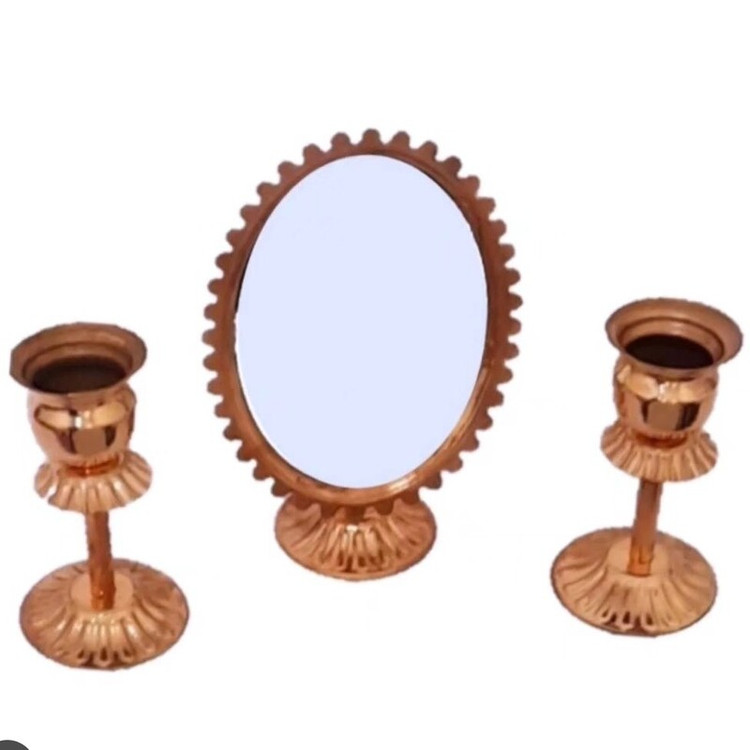 آینه و شمعدان مسی بیضی ارتفاع آینه 18 ارتفاع شمعدان 11 سانت