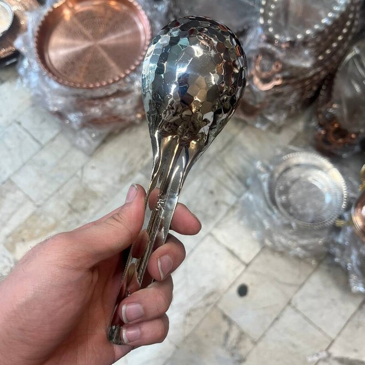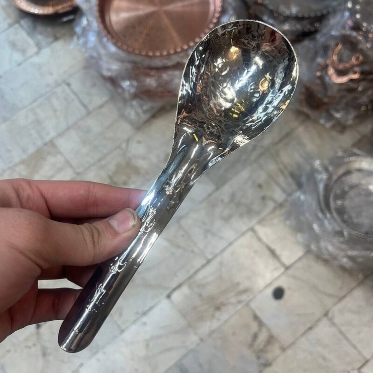 قاشق آجیل مسی کروم طول 21 سانت چکشی دست ساز رنگ ثابت