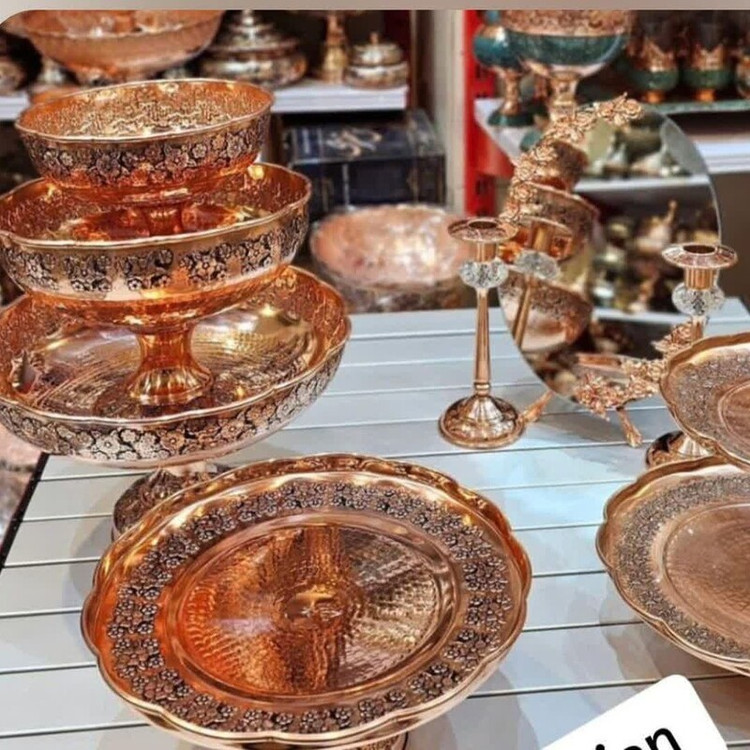 سرویس پذیرایی مسی گلبرگ چکشی سیاه قلم مسی 4 تیکه در مس زنجان نمونه