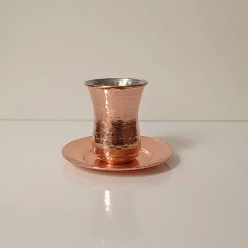 استکان و نعلبکی مسی ارتفاع 9 سانت قطر 6 سانت