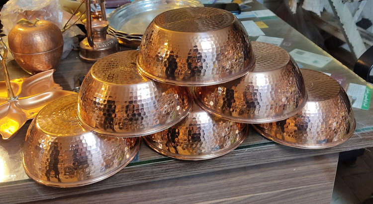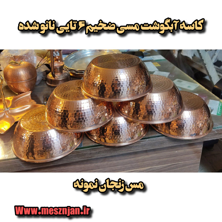 کاسه آبگوشت مسی اعلا قطر 16 چکشی ضخیم نانو شده 6تایی