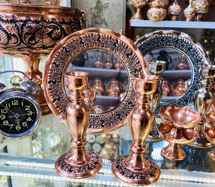 آینه و شمعدان مسی