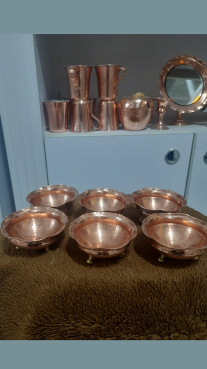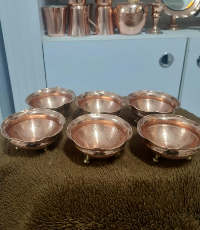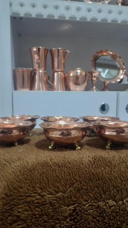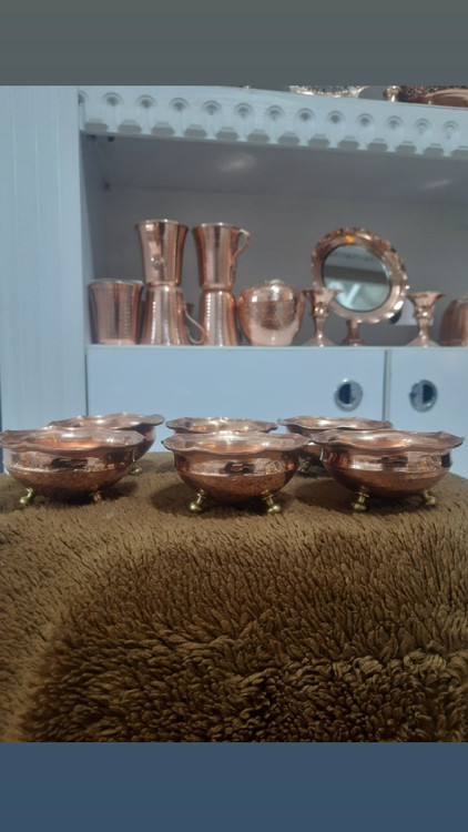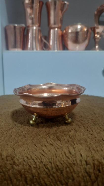 پیاله مسی سه پایه برنجی قطر ۶ عددی