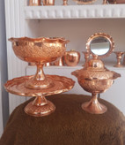 سرویس پذیرایی مسی گل برجسته، ترکیبی از ظرافت هنر دست ایرانی و درخشش چشمنواز فلز مس است. این مجموعه زیبا با طراحی گلهای برجسته و حکاکیهای هنرمندانه، جلوهای باشکوه و سنتی به میز پذیرایی شما میبخشد.