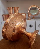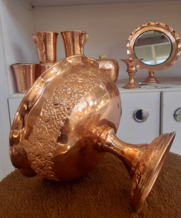 سطح براق و رنگ گرم مس در کنار نقشهای برجسته گل، حس اصالت و شکوه هنر سنتی را به خانه شما میآورد.