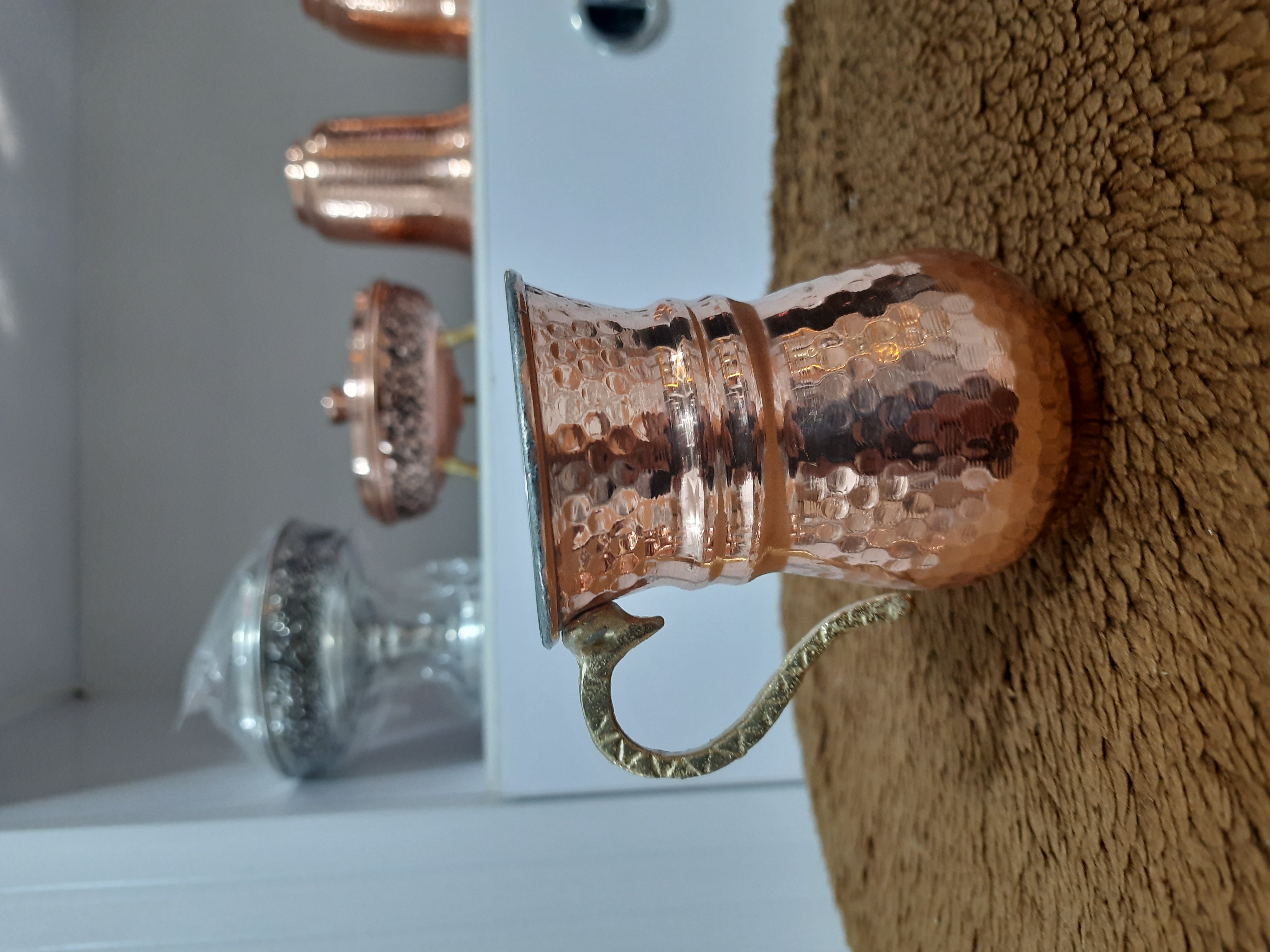 لیوان مسی چکشی دستهبرنجی طرح ترک ۱ عددی