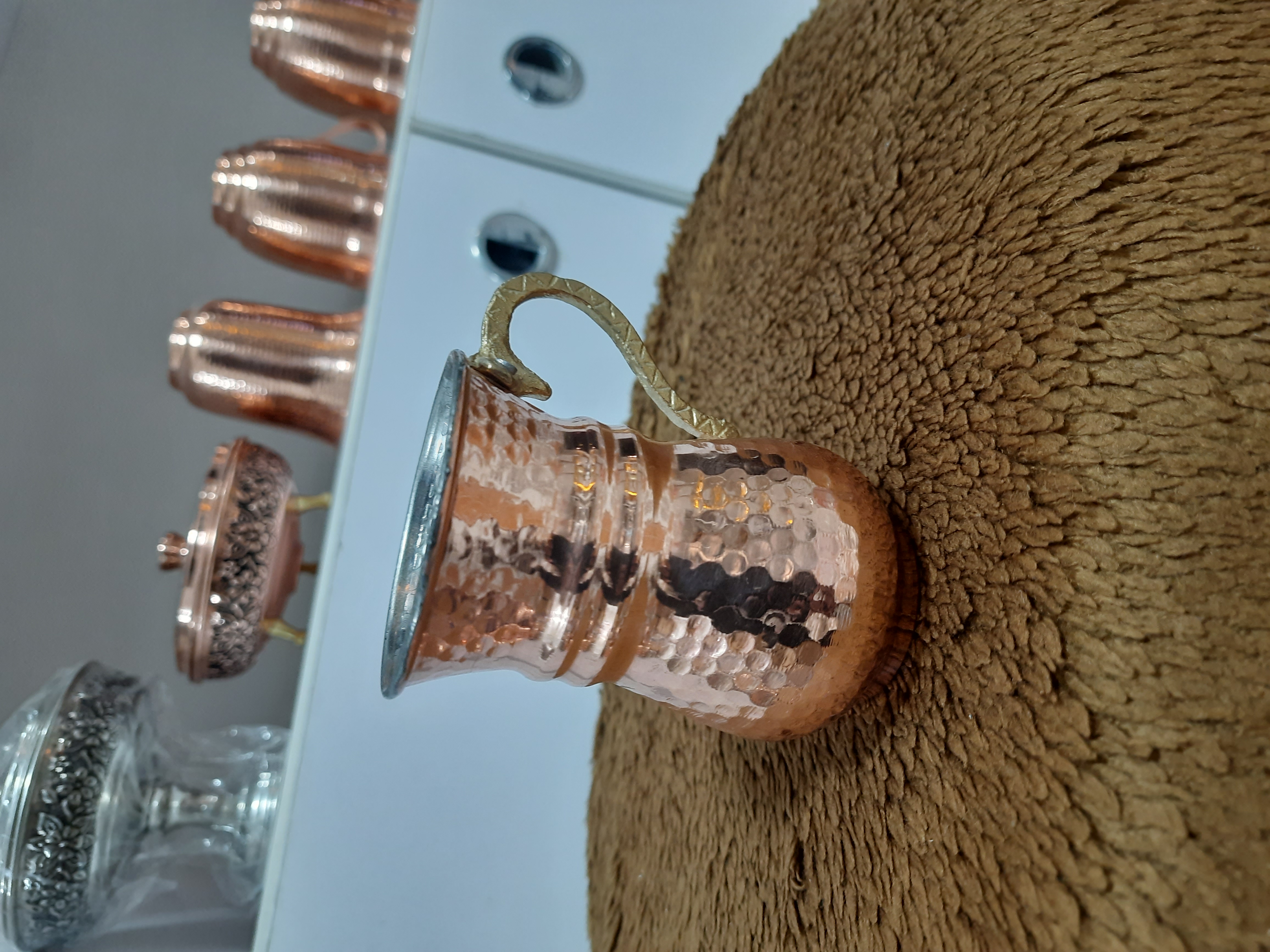 مس به دلیل ویژگیهای ضدباکتری طبیعی و کمک به بهبود هضم و تقویت سیستم ایمنی، از دیرباز در طب سنتی مورد توجه قرار گرفته است. نوشیدن آب در ظروف مسی به متعادلسازی pH بدن کمک کرده و حس تازگی ویژهای ایجاد میکند. دسته برنجی این محصول علاوه بر زیبایی، موجب راحتی در استفاده و جلوگیری از انتقال گرما به دست میشود.