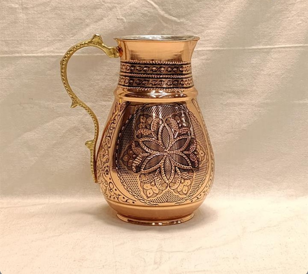 این پارچ علاوه بر جلوه دکوراتیو، مناسب سرو نوشیدنیهای سرد و گرم است و بهدلیل خواص ویژهی مس، میتواند در سلامت و بهبود طعم آب نیز تاثیرگذار باشد.