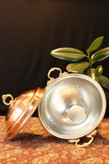 سطح داخل ظرف سوفله خوری مسی گرد چکشی زنجان | سوپ خوری مسی وارمردار پایه بلند | 2/5 لیتر | مدل فریحا با فلز قلع سفیدگری شده است و سطح خارج آن نیز نانو شده میباشد که درخشش سوفله خوری مسی وارمری را ماندگار تر و نگهداری از آن را راحت تر میکند.
