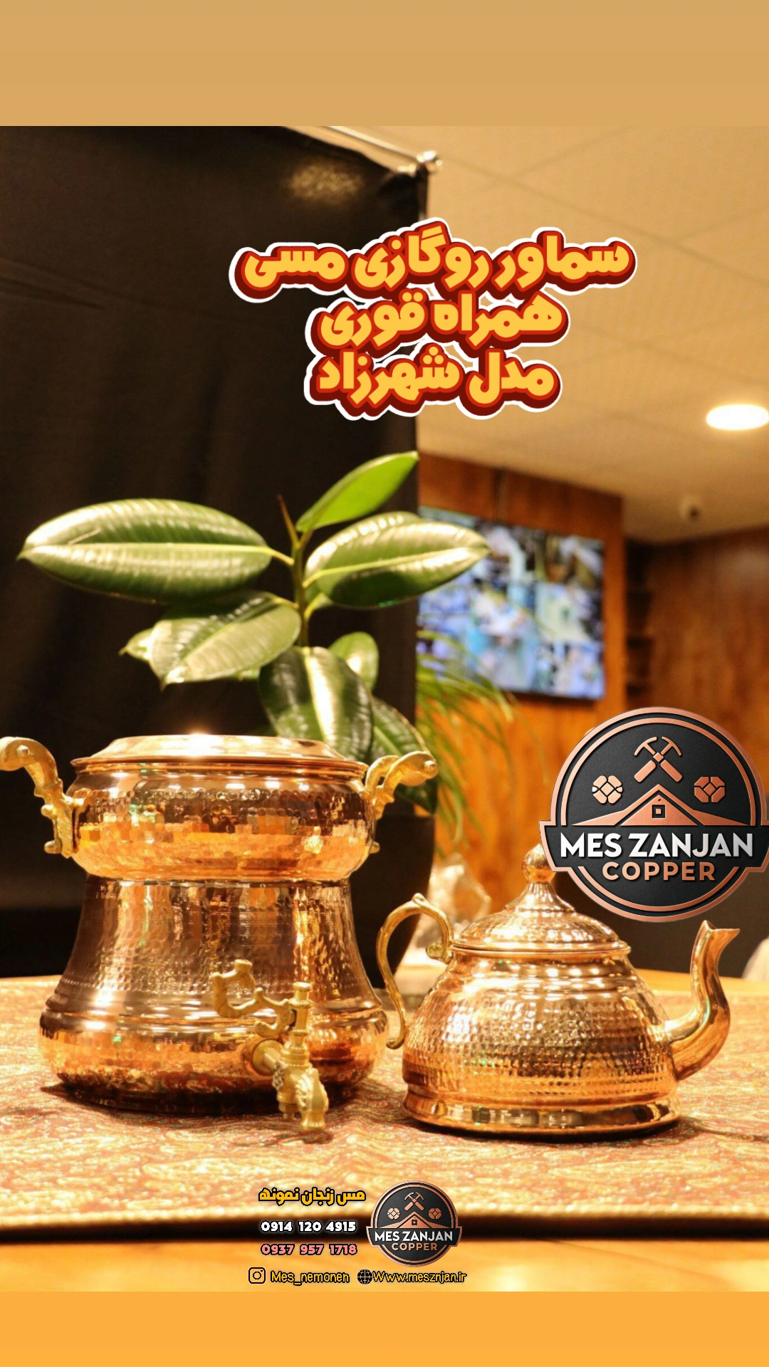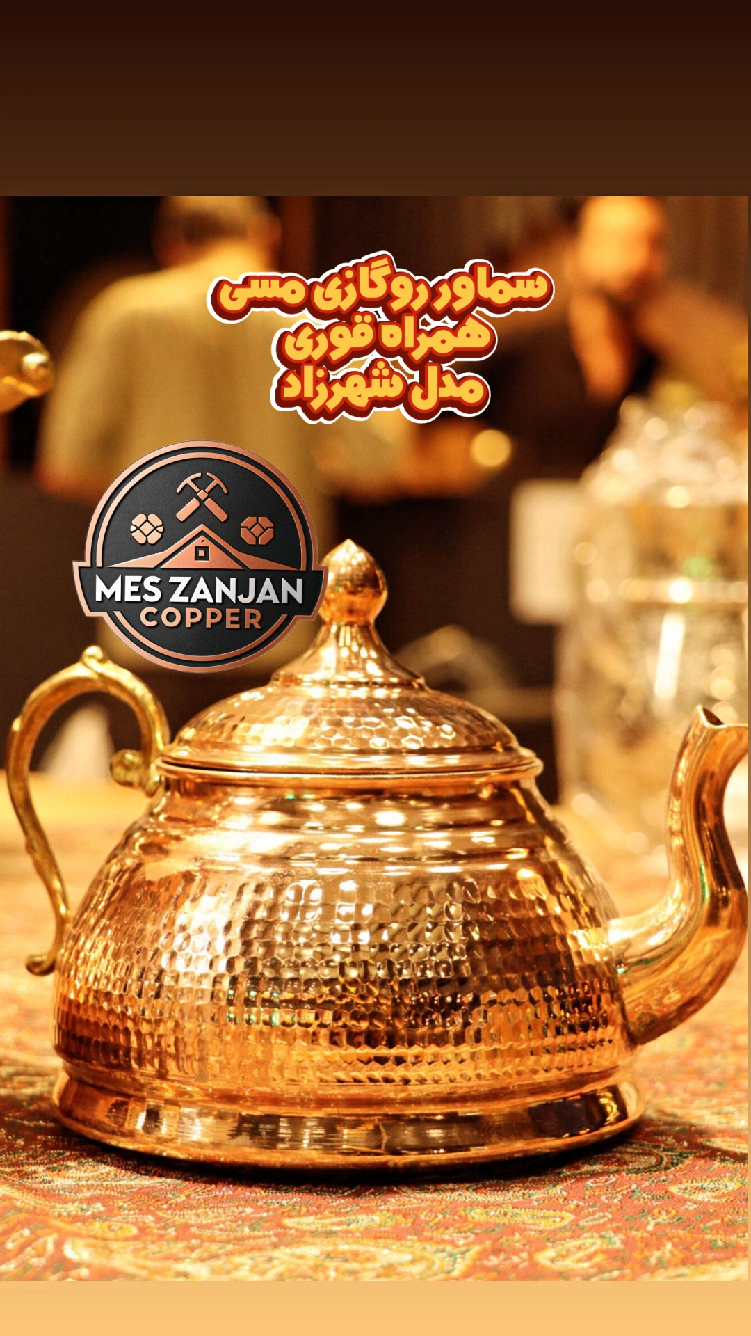 سماور روگازی مسی همراه کتری مدل شهرزاد سماور ۳ و قوری ۱ لیتری