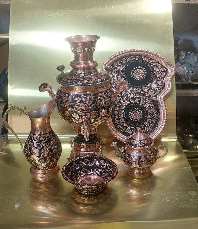 سماور مسی الماس تراش ۵ تیکه