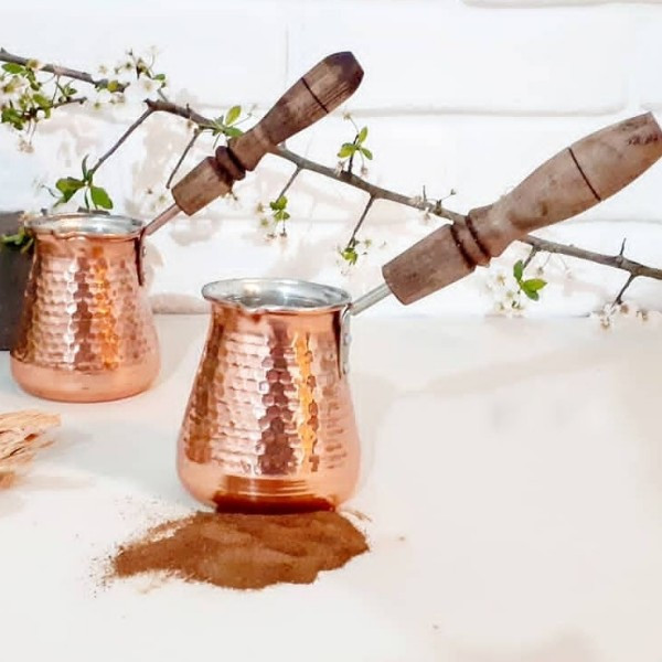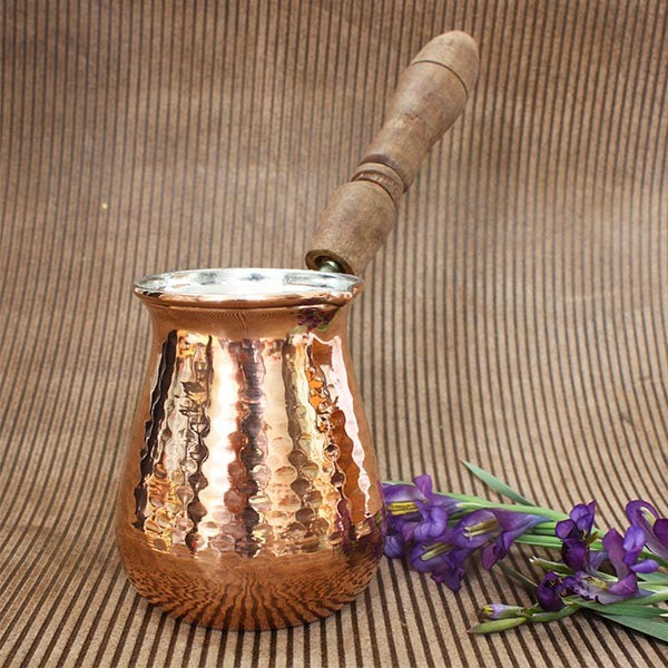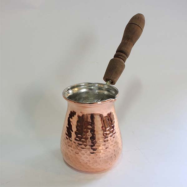 قهوه جوش مسی سایز ۲ دهانه ۸ دسته چوبی حجم ۵ کاپ