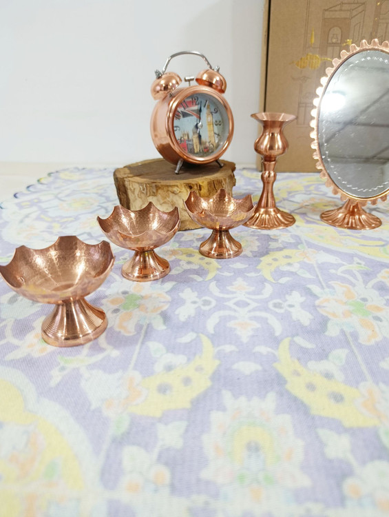 ۶ عدد پیاله نقلی هفت سین مسی ارتفاع ۵.۵ قطر ۶ سانت