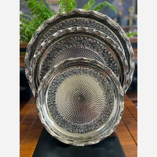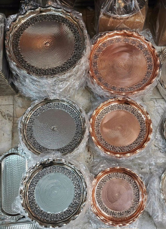 آیا به دنبال یک ظروف پذیرایی زیبا و منحصر به فرد هستید که بتواند جلوهای خاص به مهمانیها و دورهمیهای شما ببخشد؟ سینی و سرویس پذیرایی مسی با قطر های 28، 33 ، 38 سانتیمتر و طراحی چشمنواز گلبرگ، بهترین انتخاب برای شماست! 🌺
