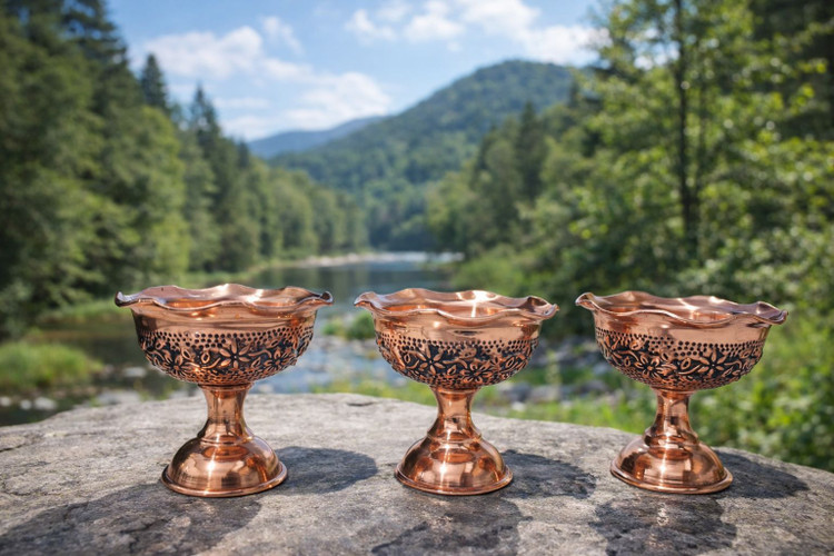سرویس شامل پیاله نقلی مسی گلبرگ سیاه قلم گل برجسته