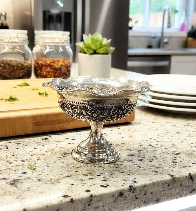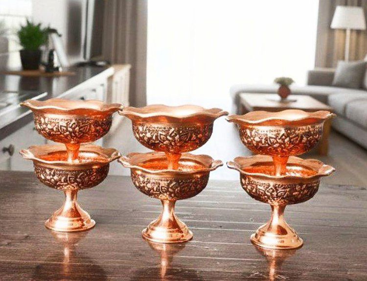 سرویس شامل پیاله نقلی مسی گلبرگ سیاه قلم گل برجسته