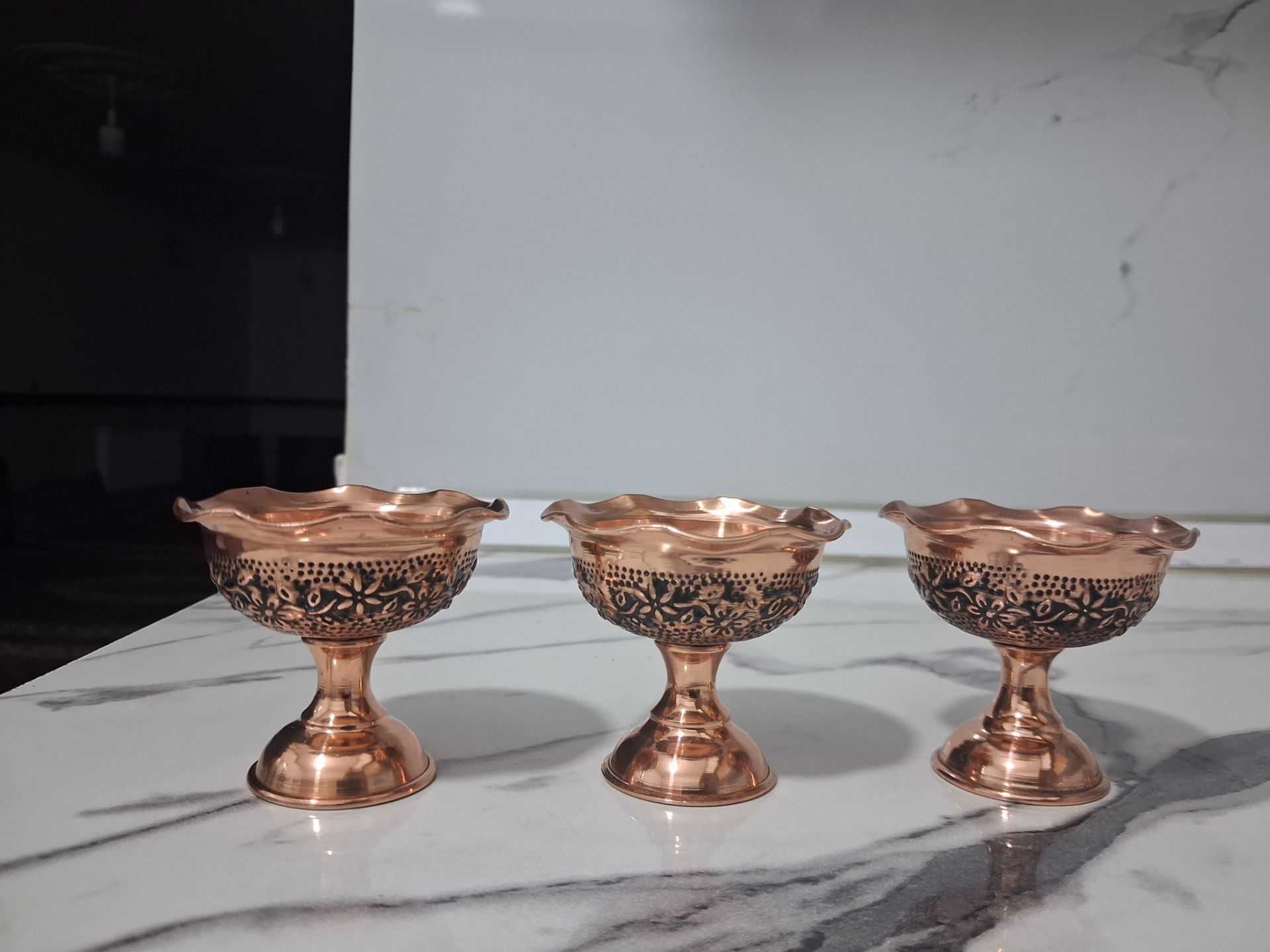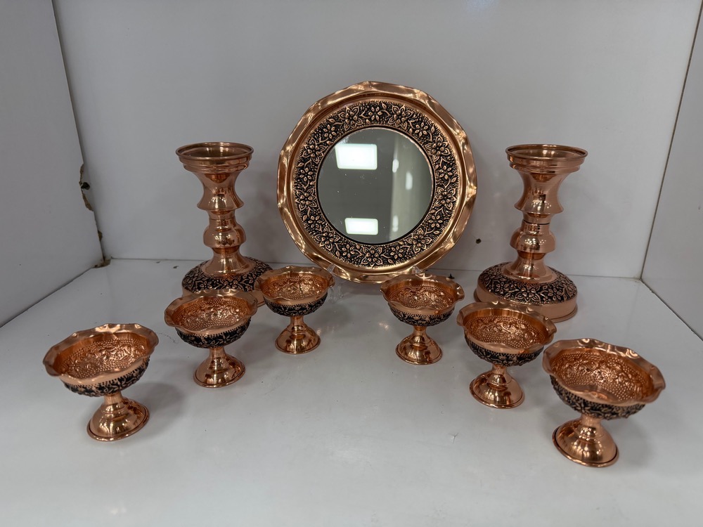 سرویس شامل پیاله نقلی مسی گلبرگ سیاه قلم گل برجسته
