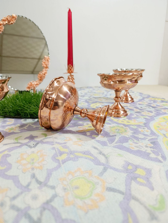 هفت سین مسی ۶ عددی، پیاله پایه دار و بستنی خوری مسی ارتفاع ۱۰ قطر ۹