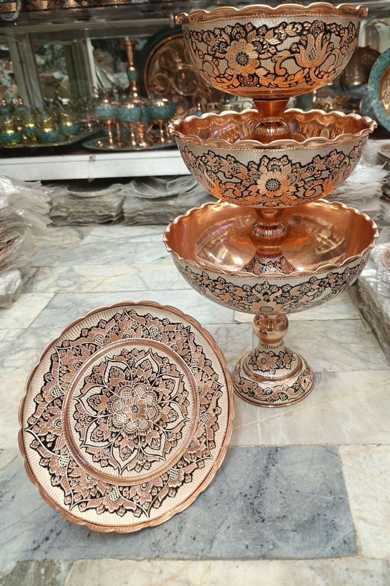 سرویس پذیرایی مسی نقره کوب ۴ تیکه