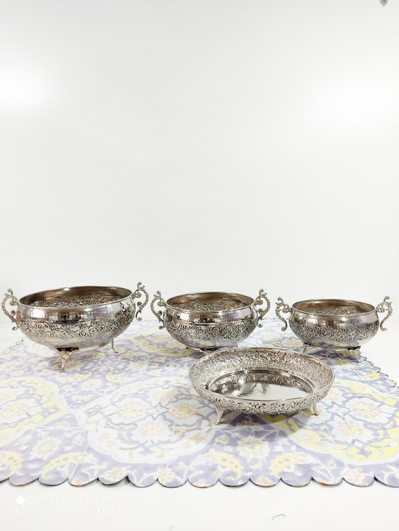 سرویس پذیرایی مسی اطلس کروم ۴ تیکه سیاه قلم