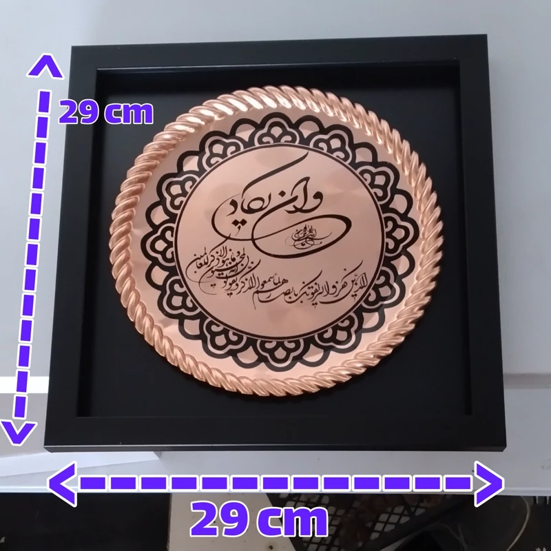 تابلو دیوارکوب مسی نانو شده با قاب الله و وان یکاد و چهار قل