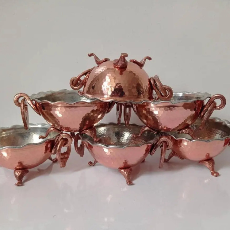 کاسه 3 پایه گوشواره دار 6 عددی .ارتفاع 5.5.قطر 11