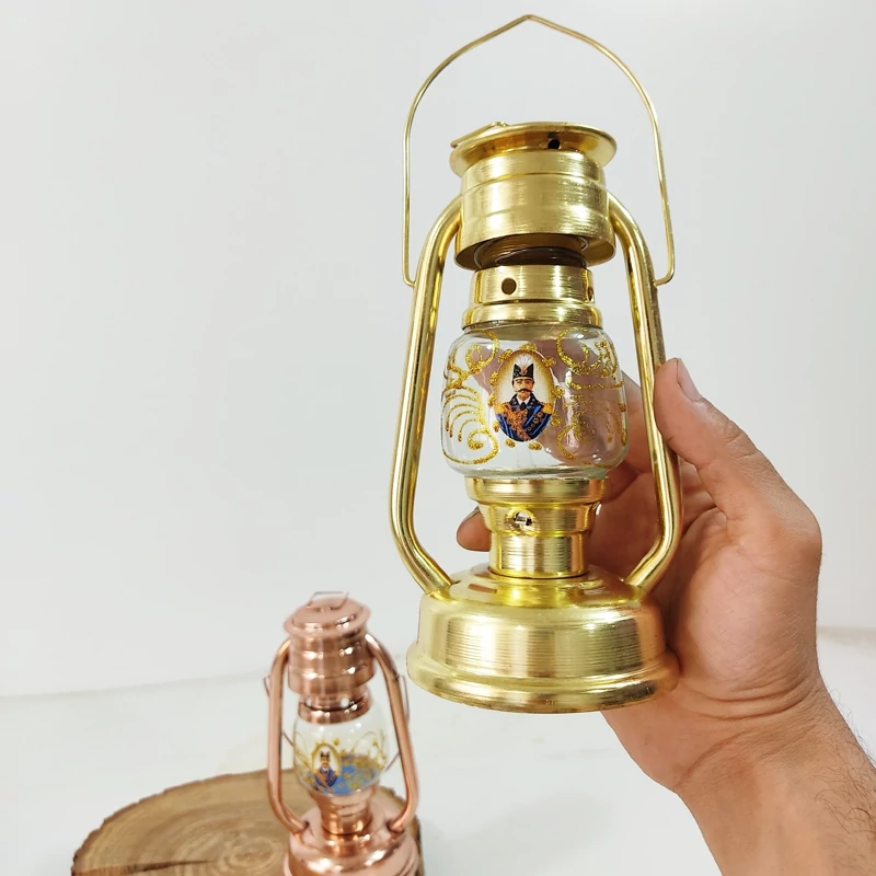 فانوس رنگ مسی و طلایی طرح شاه عباسی قابل روشن شدن