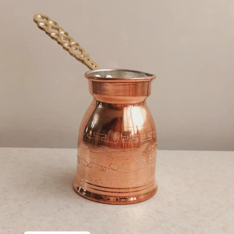 قهوه جوش دسته برنجی طرحدار ارتفاع ۹.۵ دهانه ۵.۵ حم ۴ کاپ مناسب برای انواع مصارف شیر قهوه و...