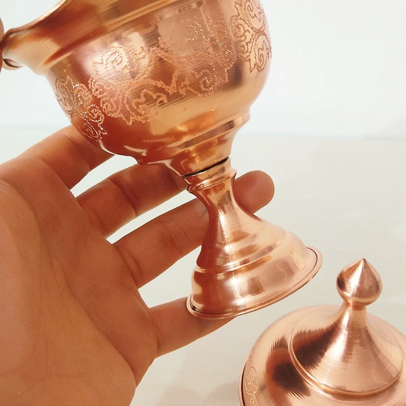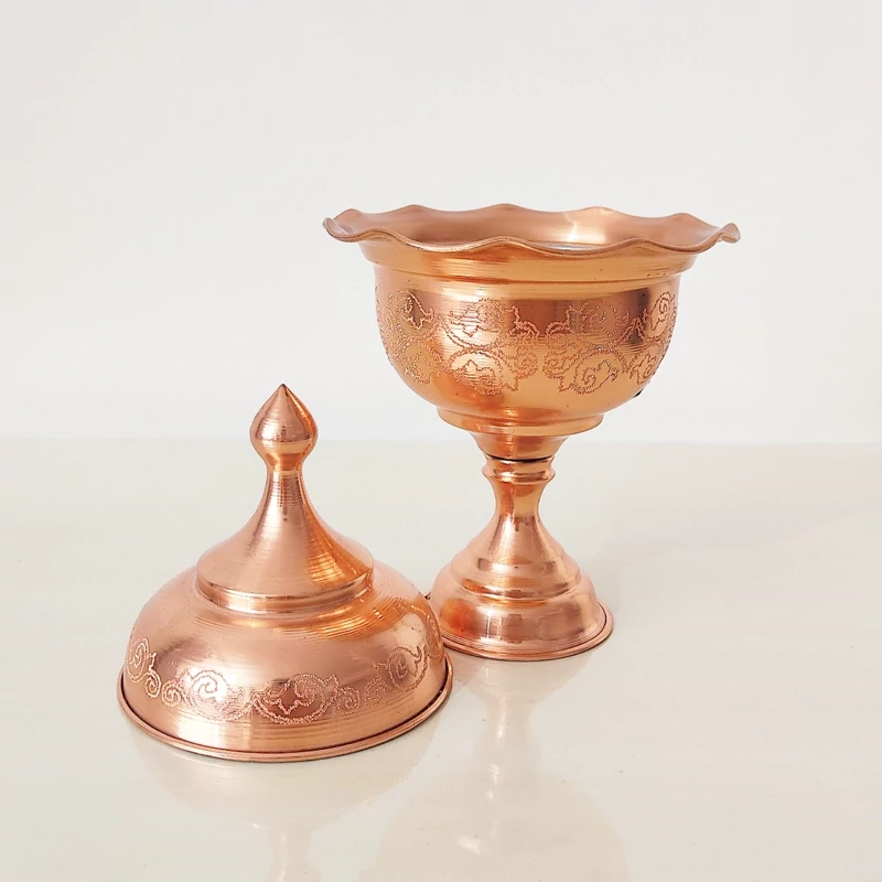 قندان تک پایه مسی زنجان نانو شده رنگ ثابت داخل کار قلع کاری شده لب کنگره و چین دار با طرح برجسته روی بدنه و درب بسیار زیبا و شیک