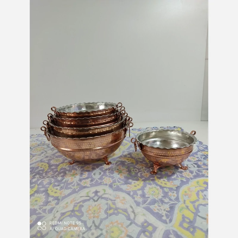 کاسه آجیل یا شکلات قطر 20 سه پایه گوشواره دار مسی زنجان
